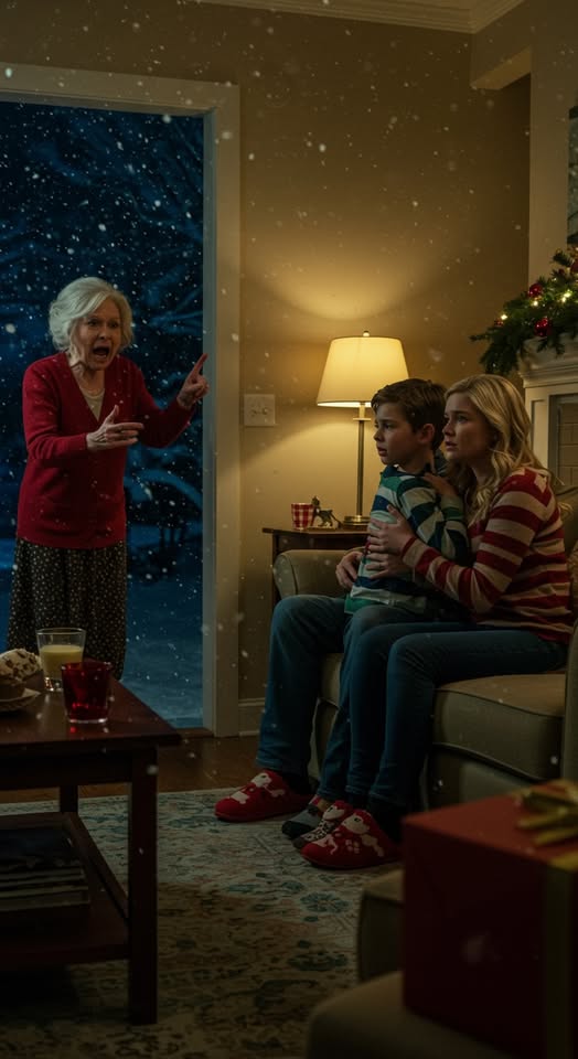 Kiedy wróciliśmy, drzwi wejściowe do domu Babci Rose były szeroko otwarte, niczym latarnia morska w śnieżnej nocy. Stała tam, czerwona na twarzy i wściekła, sama Babcia. Wymaszerowała prosto w śnieg, w płaszczu na wpół narzuconym, w przemoczonych kapciach, płatki śniegu lądowały na jej srebrnych włosach. „Wejdźcie do środka, oboje” – powiedziała stanowczo, a jej głos nie pozostawiał miejsca na sprzeciw.