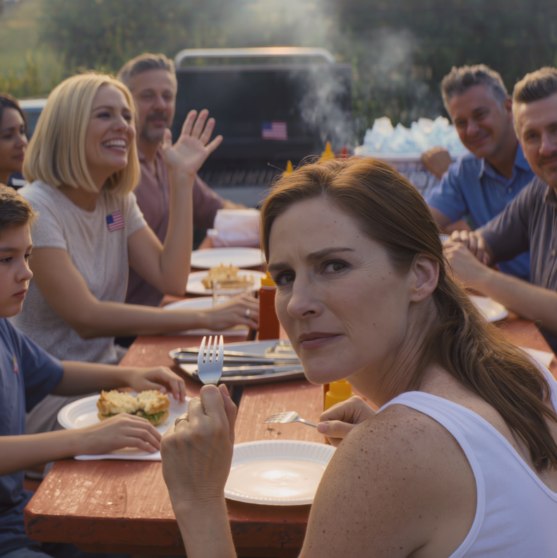 Zapach grillowanego kurczaka i węgla drzewnego unosił się po podwórku Amandy, gęsty od upału późnego lata i śmiechu, który brzmiał łatwo, dopóki nie wsłuchało się zbyt uważnie. Z przenośnego głośnika na patio wydobywały się stare piosenki – Sinatra na tyle ciche, że brzmiały jak dekoracja w tle. Czerwone plastikowe kubki pociły się na stole piknikowym obok dzbanka mrożonej herbaty. Ktoś wbił w środek stołu maleńkie papierowe flagi amerykańskie, jakby to była rozkładówka z magazynu, a nie rodzinne pole minowe.