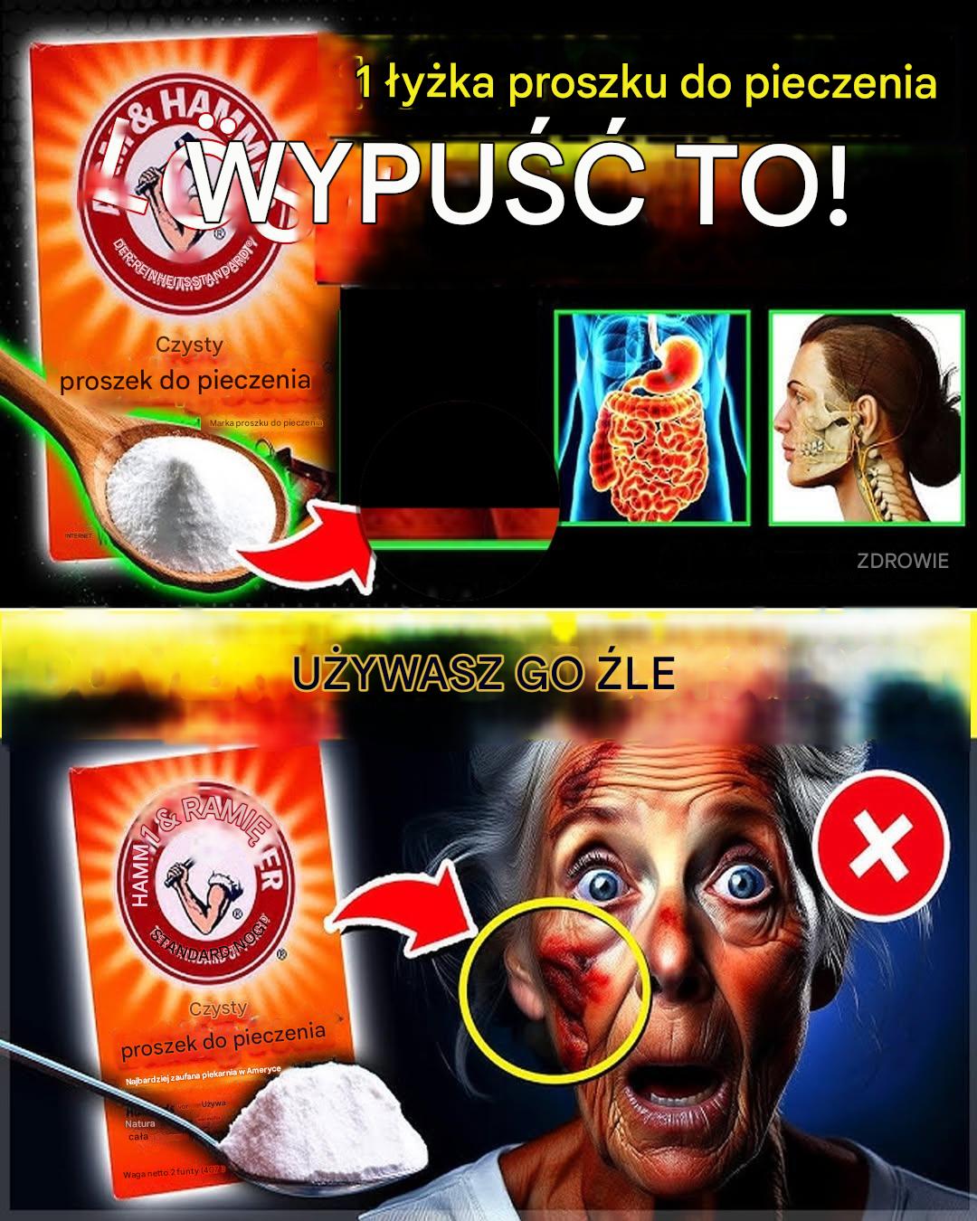 - Wysoka zawartość sodu: Proszek do pieczenia ma bardzo wysoką zawartość sodu. Regularne spożywanie może prowadzić do nadciśnienia, zatrzymywania płynów i obrzęków, szczególnie u osób z chorobami serca, nerek lub stosujących dietę niskosodową.