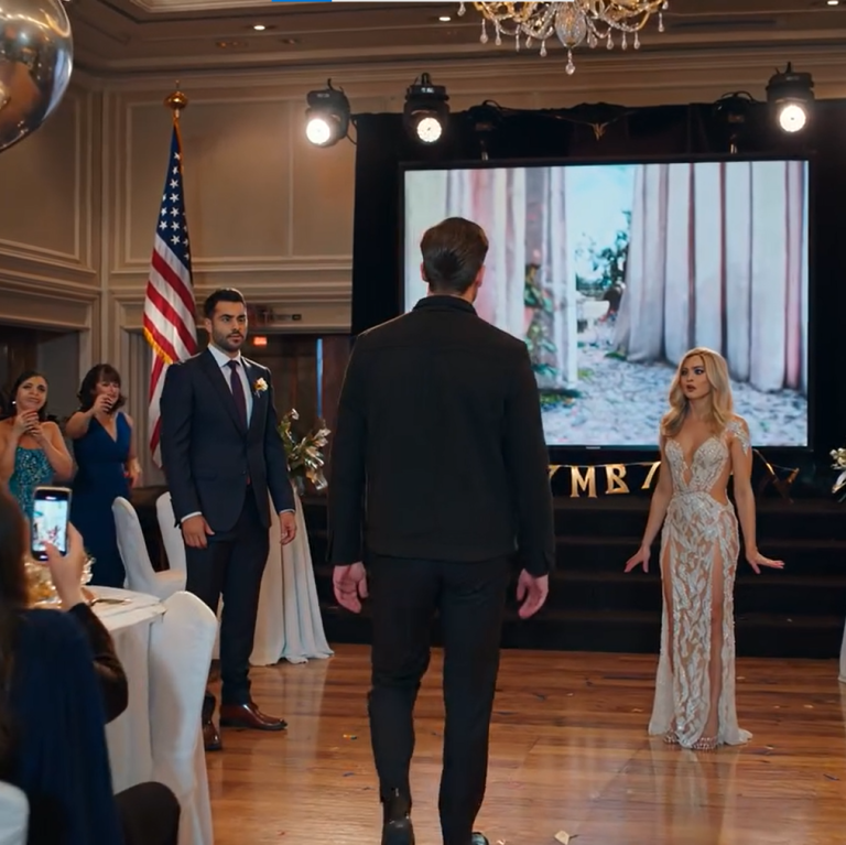 A za małą sceną, szeroki ekran już przewija zdjęcia zaręczynowe, miękkie uśmiechy i starannie dobrane światło słoneczne. Mój brat i jego panna młoda w blasku plaży i restauracji, w miłości, w którą wierzysz, kiedy nigdy nie nauczono cię wątpić.