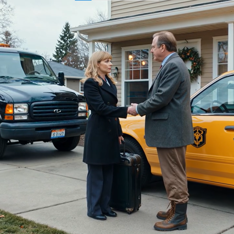 Taksówka przyjechała dokładnie w południe. Patrzyłem z okna salonu, jak wjeżdża na nasz podjazd, jej żółta farba kontrastowała z szarym grudniowym niebem.
