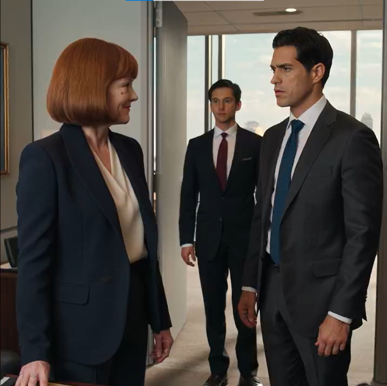 „Rozmawiałem już z panią Davidson” – powiedział chłodno Frank. „Potwierdziła, że pani Renee Sterling ma pełną swobodę decydowania o wszystkich aktywach i decyzjach trustu. Fuzja nie może się odbyć bez jej pisemnej zgody”.