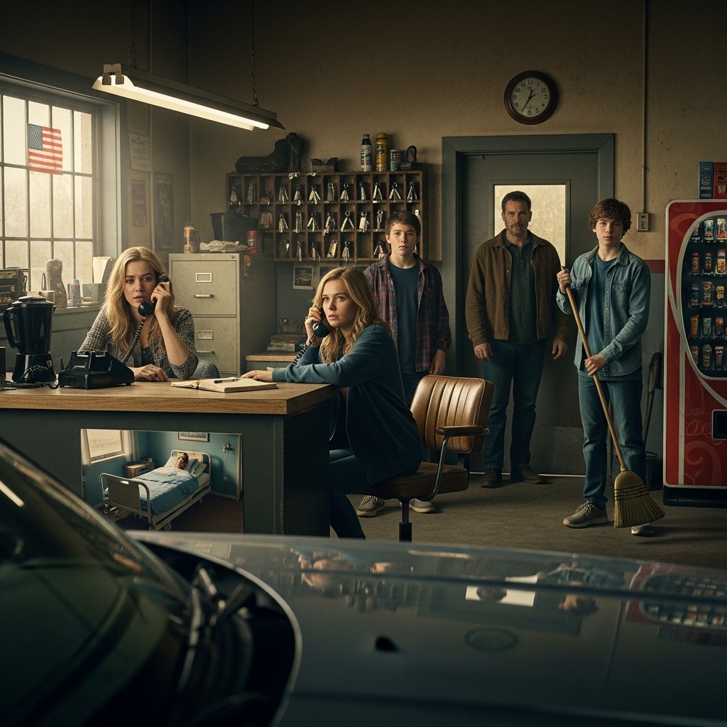 Za przednimi oknami Cedar Rapids czaił się pod szarym popołudniem i niebem, które zdawało się zapominać, jak kończyć myśl. Parking był pełen samochodów klientów, które nagle wydawały się obce. Wewnątrz, krzesła dla oczekujących stały krzywo przy ścianie, jakby zrezygnowały z postawy. Ekspres do kawy grzał się wciąż ten sam, wypalony cal na dnie, uparty jak zły nawyk.